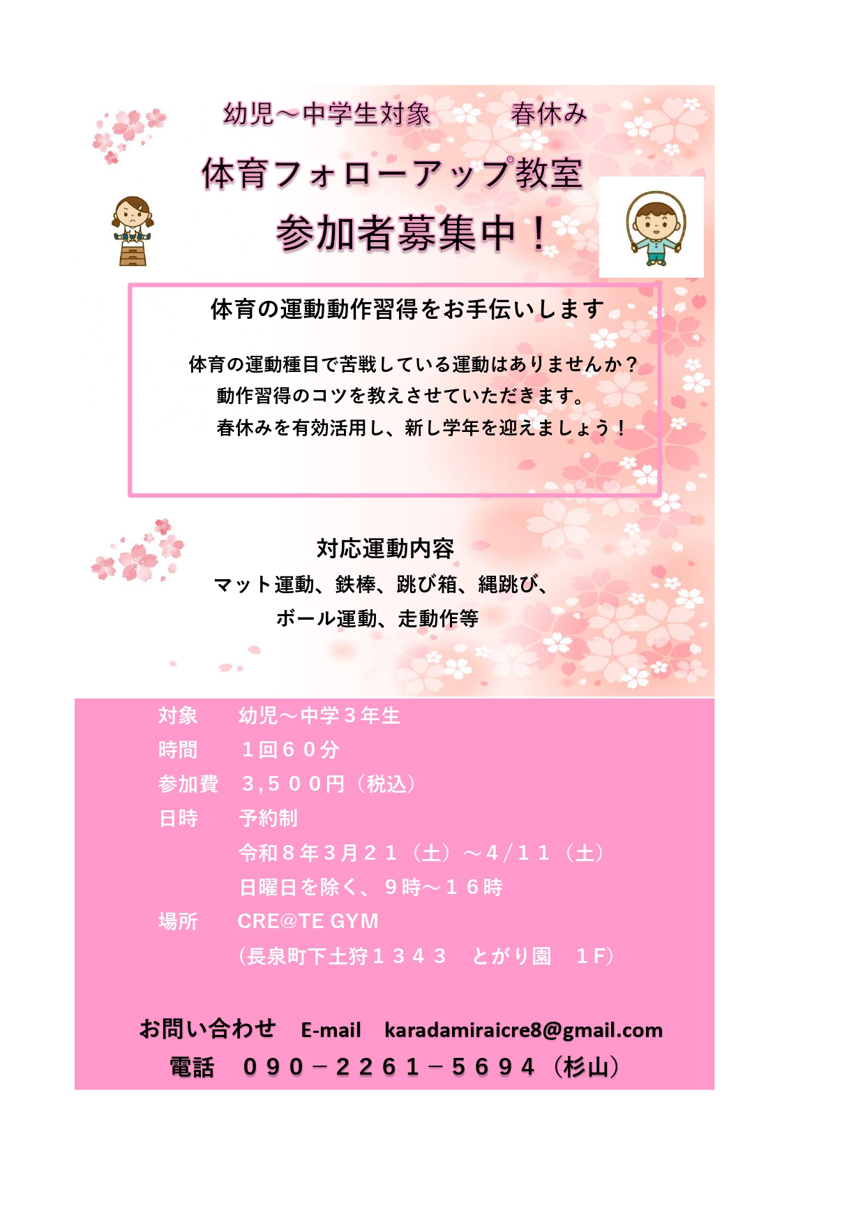 体育のフォローアップ教室開催!参加者募集中