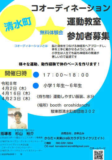 清水町コオーディネーション運動教室無料体験会参加者募集中!